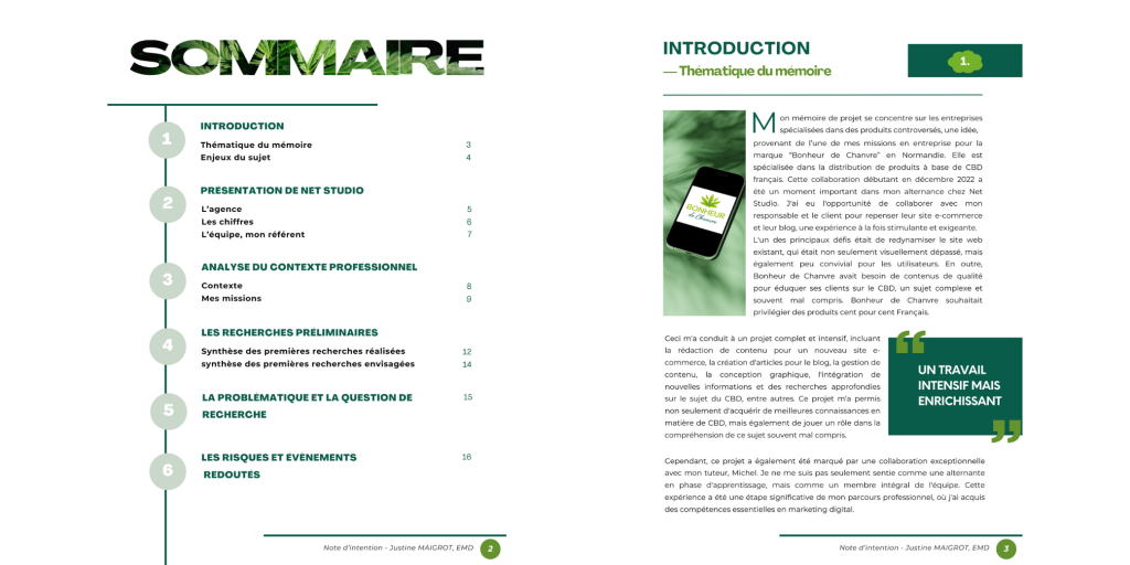 Ce projet a été fascinant en raison de son originalité et de la synergie digitale entre le blog et le site e-commerce. C’est pourquoi j’ai choisi d’explorer ce sujet dans mon mémoire de fin de master. Voici un aperçu de ma note d’intention :